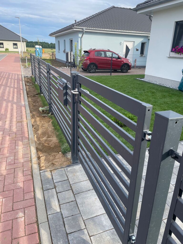 Unser maßgeschneiderter Zaun und Eingangstor mit modernem Design, stilvoller Metallverarbeitung und eleganter Oberflächenveredelung verkörpern höchste Qualität und werden exakt nach den individuellen Anforderungen unserer geschätzten Kunden gefertigt.